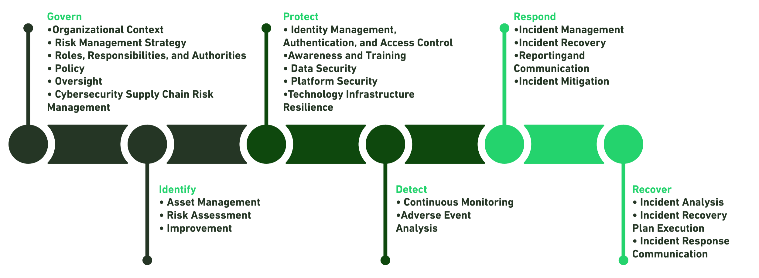 Scoring results are provided for categories and subcategories of the CSF Framework.